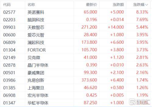 半(ban)导体股活跃,英诺赛(sai)科涨超8%,天数智芯、爱芯元智、澜(lan)起科技、FORTIOR、贝克微等跟涨。