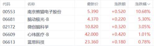 脑(nao)机(ji)接口股大涨,南京熊猫电子股分涨超10%,脑(nao)动极光、微创脑(nao)科学、心玮医疗、蓝思科技等跟涨。