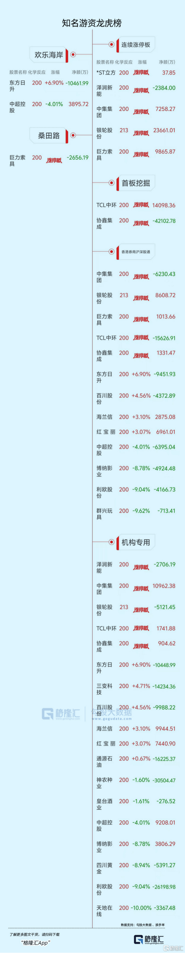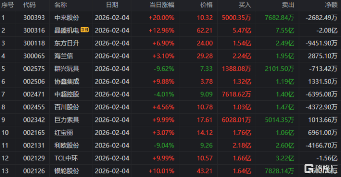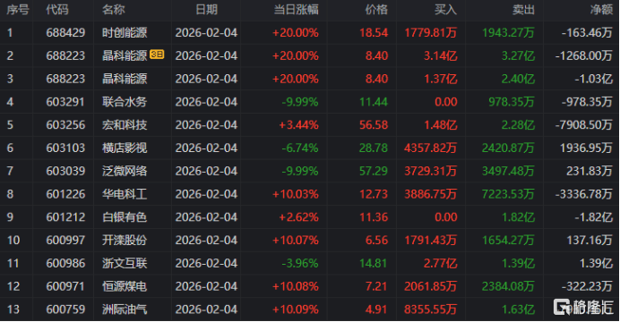 龙虎榜单日净卖出额前三为协鑫集成(cheng)、西方日升、利欧股份(fen),分别为4.21亿、2.7亿、2.53亿。